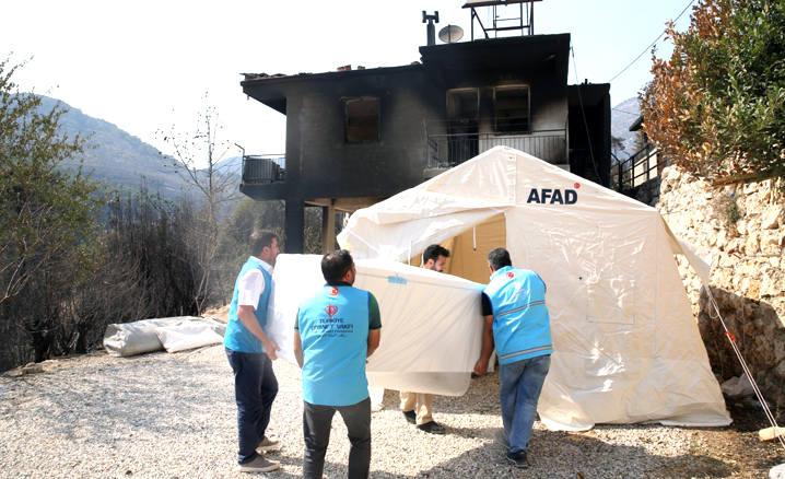 Antalya Manavgat'ta günlerce devam eden orman yangınında evleri ve eşyaları zarar gören ailelerin imdadına Türkiye Diyanet Vakfı (TDV) yetişti.