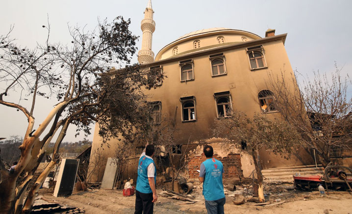 Yangın söndürme çalışmalarına bizzat katılan din görevlileri ve TDV gönüllüleri, yangınların kontrol altına alındığı noktalarda vakit keybetmeden yangından etkilenen vatandaşların yaralarını sarmaya başladı.