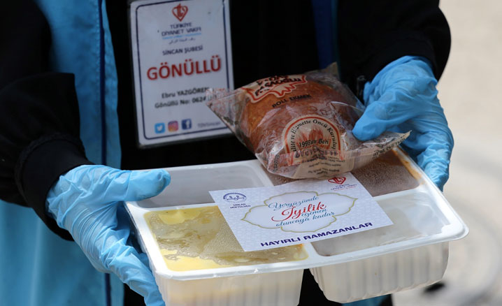 Tüm dünyada etkili olan yeni tip koronavirüs (Covid-19) tedbirleri kapsamında iftar çadırları kurulamaması nedeniyle hazırlanan iftar paketleri, Türkiye Diyanet Vakfı gönüllüleri ve din görevlileri tarafından kapı kapı dolaşılarak ihtiyaç sahiplerine ulaştırılıyor.