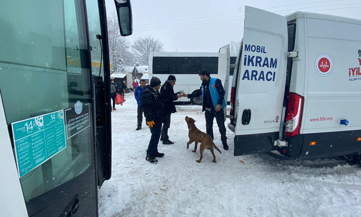 Çetin kış şartlarının etkisini göstermeye başlamasıyla birlikte Bolu Dağı geçişindeki mevkilerde araç yoğunluğu yaşandığını ve vatandaşların mağdur olabileceği bilgisini aldıklarını belirten Açık, “Görevlilerimiz Çarşamba günü kar yağışının etkisini artırmasıyla birlikte yola çıktı. Geceden itibaren vatandaşlara çorba, kek, bisküvi ve su ikramında bulundu. Ayrıca yol açma çalışması gerçekleştiren karayolları ekipleri, kontrolleri sağlayan güvenlik güçlerine de ikramlarımızdan veriyoruz. Toplumun her kesimine ihtiyaç duyulan her alanda yardım ulaştırmanın gayreti içerisindeyiz. Kış şartlarının etkisini iyice artırdığı bu günlerde yola çıkmak durumunda kalan vatandaşlarımız burnu bile kanamadan varmak istedikleri yerlere ulaşır. Bizde devletimizin diğer birimleriyle birlikte vatandaşlarımıza yollarda yardımcı olmaya gayret edeceğiz” diye konuştu.