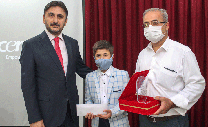 Hafız Çiftci ile din görevlisi olan baba Ahmet Çiftci’yi kabul eden İl Müftüsü Durmuş Ayvaz, genç hafızı tebrik ederek Türkiye Diyanet Vakfı tarafından gönderilen hediye çekini takdim etti.