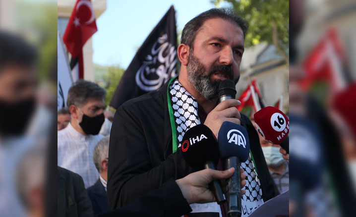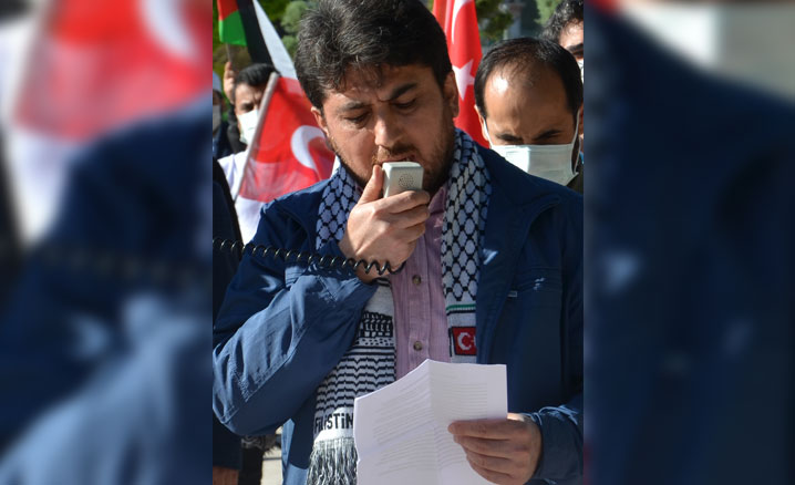 İsrail aleyhine sloganlar atan grup adına açıklamayı okuyan Naci İris, mübarek Ramazan’da yapılan bu acımasız saldırıyı kınadıklarını belirtti.