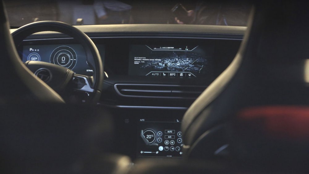 Orta konsol, otomobilin iç mekanının en önemli stil ve fonksiyon özelliklerinden biri olarak öne çıkıyor. Uçak kokpitini hatırlatan form üzerinde vites ve elektronik park freni fonksiyonlarını barındıran konsol, ergonomisiyle dokunmatik kumanda ekranının kontrol edilmesine de yardımcı oluyor. Dokunmatik ekranda kullanıcıyı merkeze alan ara yüzün kullanıcı dostu tasarımı, sesli komut özelliğinin de desteğiyle alışagelmiş kontrol düğmeleri ve kumanda elemanlarını olabildiğince azaltarak iç mekânın yalın ve sade tasarımını destekliyor. Türkiye’nin otomobili, teknolojiyi yalınlıkla birleştiren bu tasarım yaklaşımı ile yüksek teknolojinin karmaşık olmadan da sunulabilir olduğunu kanıtlıyor.