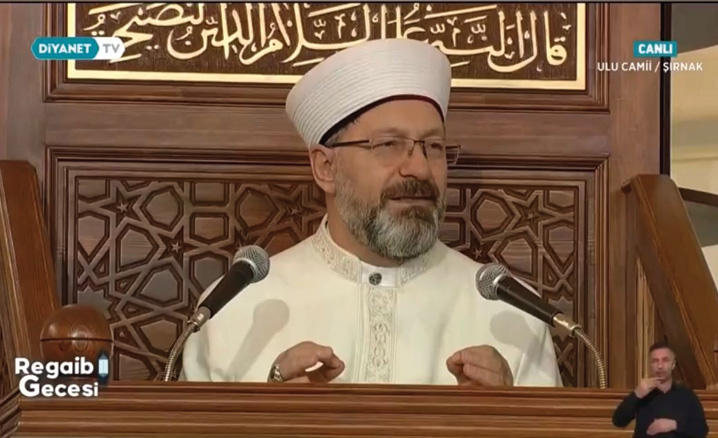 "Rabb'im hepimize imanla, salih amelle, hakkı tavsiyeyle, sabrı tavsiye ile yaşamayı, gençlerini, çocuklarını, neslini bu şekilde yetiştirmeyi hepimize nasip eylesin inşallah." diyen Erbaş, Regaib'in Hakk'a yönelmek olduğunu ifade etti.