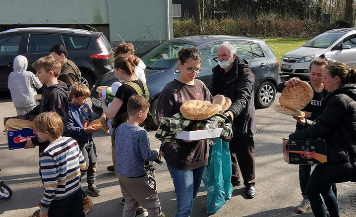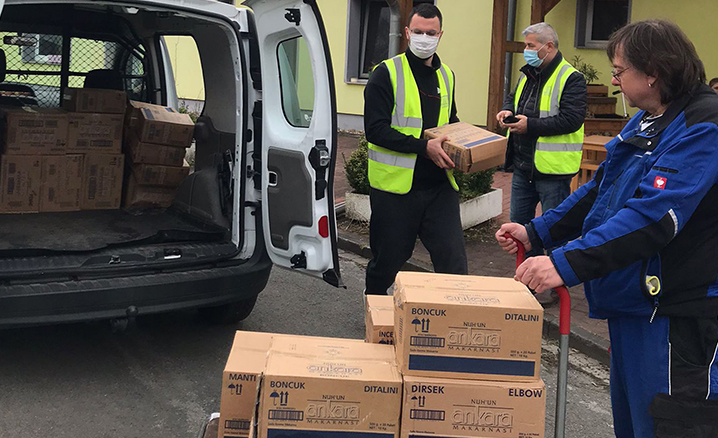 Duisburg DİTİB Merkez Camii adına yaşlılar heyeti, kadın ve gençlik kollarından oluşan gönüllüler, cami cemaati ve iş insanları tarafından bağışlanan kuru gıda, çocuklar için yiyecek ve içecekleri kampta yaşayan mültecilere ulaştırdı.