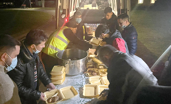 Diyanet İşleri Türk İslam Birliği’ne (DİTİB) bağlı Duisburg Merkez Camii gönüllüleri, çoğunluğu çocukl olan 180 kişinin kaldığı Dinslaken Ukraynalı mülteciler kampını ziyaret ederek, sıcak yemek, su ve gıda yardımında bulundu.