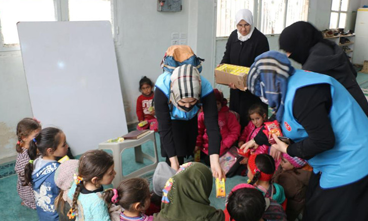 Suriye’ye ulaşan insani yardım malzemeleri, TDV Ümraniye gönüllüleri ile TDV koordinatörleri tarafından Afrin, Racu ve İdlib bölgesindeki çadır kentlerde yaşam mücadelesi veren ailelere dağıtıldı.