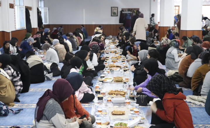 Camiye kurulan iftar sofrasına yaklaşık 500 öğrenci katıldı.