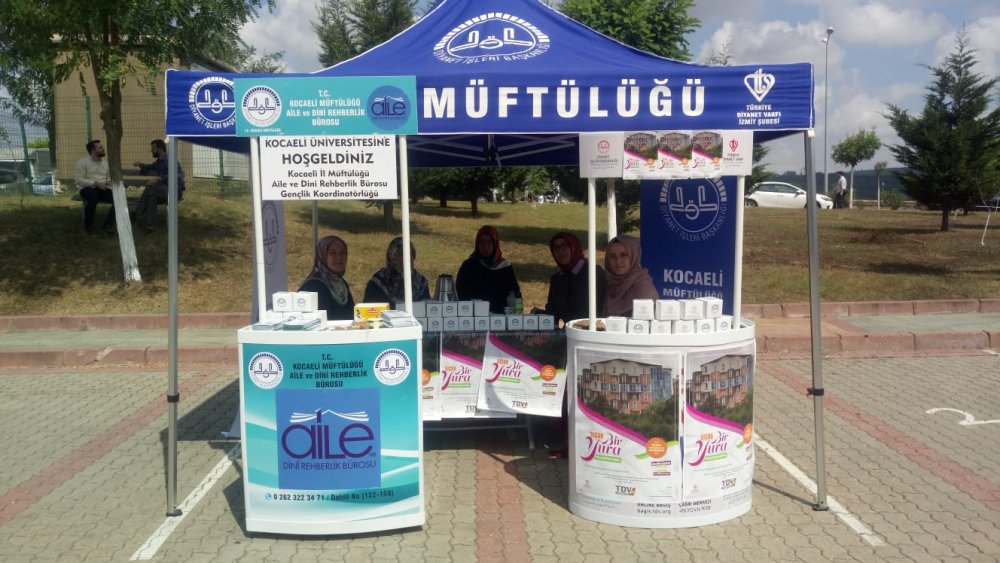 Kocaeli Müftülüğü Aile ve Dini Rehberlik Bürosu ve Gençlik Koordinatörlüğü üniversite öğrencilerinin kayıt haftası olan 3-7 Eylül tarihlerinde Kocaeli Üniversitesi Sosyal Tesisler girişinde tanıtım ve rehberlik standı açtı.