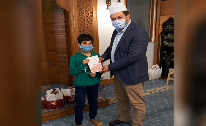 Mukabele programında gençlerle bir araya gelen Üsküdar İlçe Müftülüğü Şube Müdürü Abdulkadir Ekşi, gençlere hediye takdiminde bulundu.