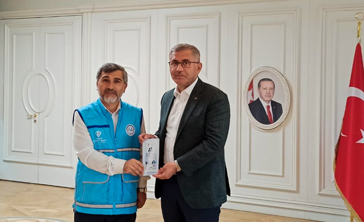 Kurban vekaletlerini TDV Üsküdar Şubesi adına kabul eden İlçe Müftü Vekili Gül, Demiryürek ve Türkmen'e teşekkür ederek bağış makbuzlarını takdim etti.