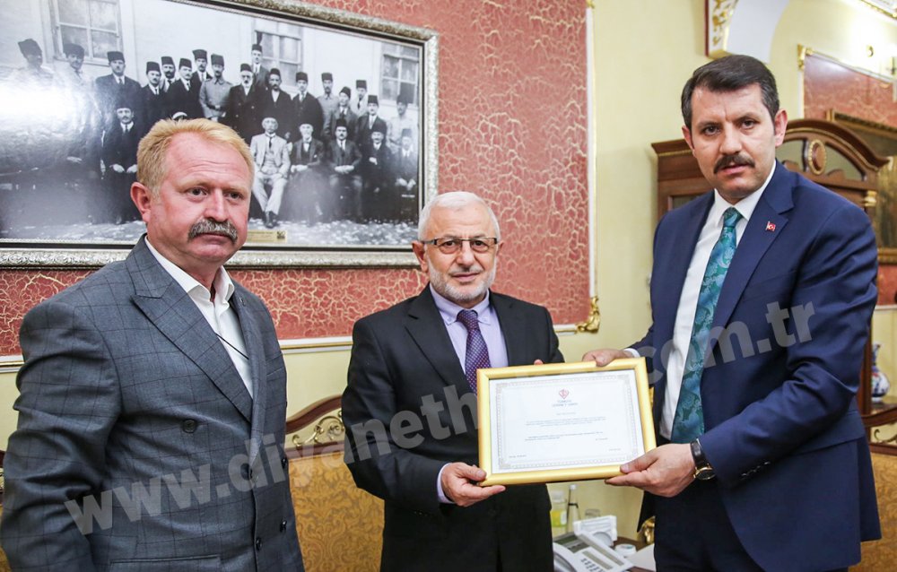 İl Müftüsü Yusuf Akkuş ve TDV Şube Yöneticisini makamında kabul eden Vali Ayhan, Diyanet Vakfının Sivas’taki çalışmaları hakkında Müftü Akkuş’tan bilgi aldı.