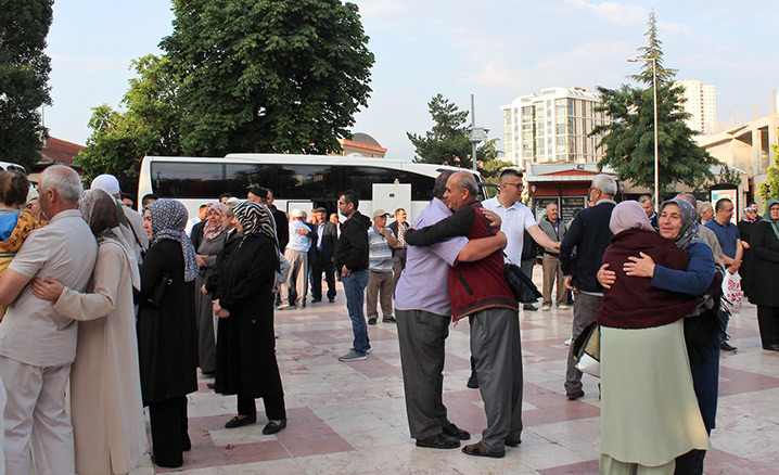 Müftü Erhun'un yaptığı duanın ardından yakınları ile helalleşerek vedalaşan hacı adayları, kutsal topraklara gitmek üzere otobüslerle Bursa Yenişehir Havalimanı'na doğru yolu çıktı.
