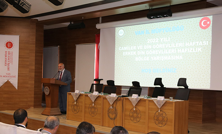 Camiler ve Din Görevlileri Haftası etkinlikleri kapsamında Diyanet İşleri Başkanlığınca bu yıl XVIII. düzenlenen "Hafızlık ve Kur'an-ı Kerim'i Güzel Okuma" yarışmalarında "Erkek Din Görevlileri Arası Hafızlık Yarışması Bölge Finali" Van İl Müftülüğü Nimetullah Arvas Konferans Salonu'nda gerçekleştirildi.