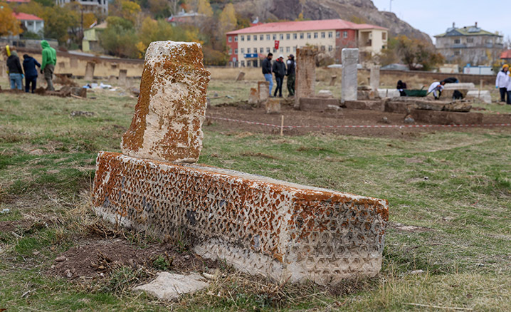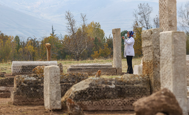 Boyları 2,5 metreye varan, üzerindeki yazı ve geleneksel motiflerle ilgi çeken mezar taşlarının bulunduğu alanda hem mezar taşları restore ediliyor hem de kitabe ve süslemeler çözümleniyor.