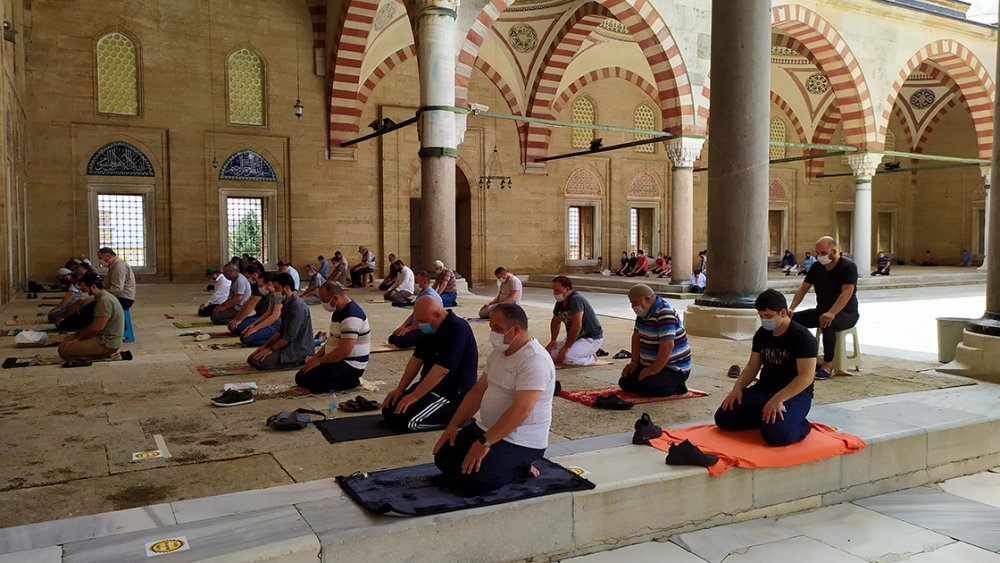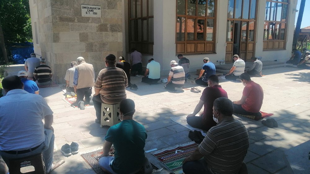 Namaz öncesinde ve sonrasında dezenfektan kullanmaya dikkat ettiklerini vurgulayan Canbolat, "Polis ve cami görevlileri de gerekirse vatandaşları uyarıyor. Sosyal mesafeli bir şekilde namaz kılınıyor." diye konuştu.