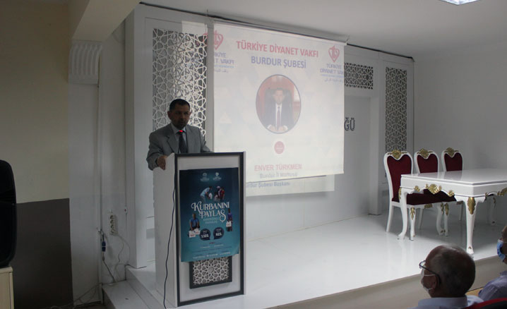 Bu kapsamda Burdur İl Müftülüğü ile Türkiye Diyanet Vakfı Burdur Şubesi ev sahipliğinde gerçekleştirilen 2021 Yılı Vekalet Yoluyla Kurban Kesim Organizasyonu Tanıtım ve İstişare Toplantısı'na, Diyanet İşleri Başkanlığı Strateji Geliştirme Başkanı Mahmut Türk konuşmacı olarak katıldı.