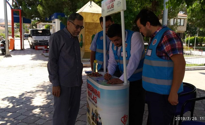 “Kesilen kurbanların etlerinin yurt içinde ihtiyaç sahiplerine, Kur'an kursu ve öğrenci yurtlarına, yurt dışında ise öncelikle açlık, yoksulluk ve iç çatışmaların yoğun olduğu Afrika, Afganistan, Pakistan, Arakan başta olmak üzere Orta Asya, Balkanlar, Türk Cumhuriyetleri ve Kafkasya olmak üzere toplam 149 ülkeye ulaştıracaklarını” ifade eden İlçe Müftüsü Muhammed Yusuf Yaşar, vekâlet yoluyla kurban bağış standının 9 Ağustos’a kadar açık kalacağını belirterek kurban bedelinin yurt içi 890 TL, yurt dışı ise 725 TL olduğunu hatırlattı.