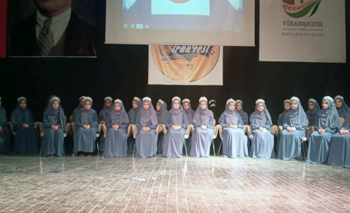 Viranşehir İlçe Müftülüğü Hacı Süleyman Akyürek Yatılı Kız Kur’an Kursu’nda hafızlık eğitimini tamamlayarak Diyanet İşleri Başkanlığınca uygulanan Hafızlık Tespit Sınavı’nda başarılı olan 27 öğrenciye hafızlık belgeleri takdim edildi.