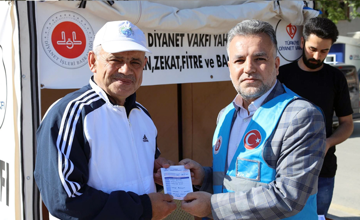 Kurban bağışlarını TDV Yahyalı Şubesi adına kabul eden İlçe Müftüsü İbrahim İkbal, bağış makbuzlarını teslim ederek teşekkür etti.