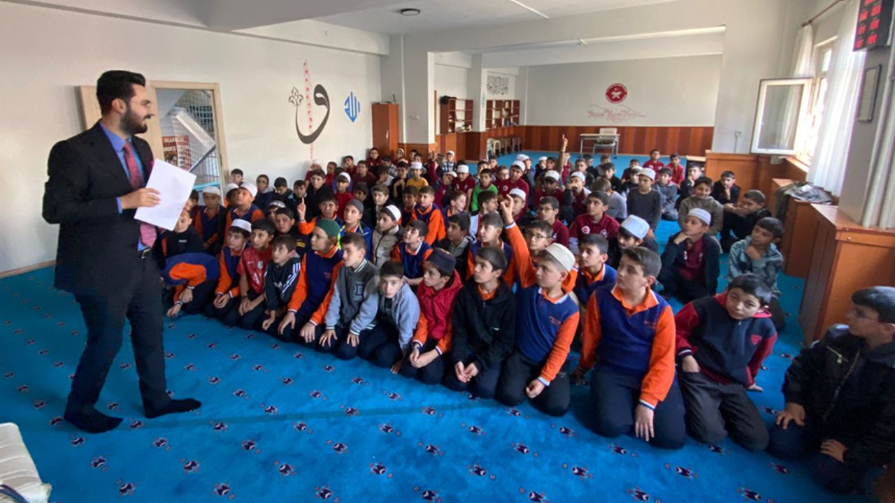 Bu kapsamda Aziziye Kur'an Kursu'ndaki gençlerle bir araya gelen Yakutiye İlçe Diyanet Gençlik Koordinatörü ve Din Hizmetleri Uzmanı Samet Berberoğlu, Peygamber Efendimiz (sas)’in gençlerle kurduğu sevgi temelli ilişkiye dikkat çekerek, "Gençliğimizi Hz. Peygamber’in ahlakıyla buluşturmak hepimizin görevidir." dedi.