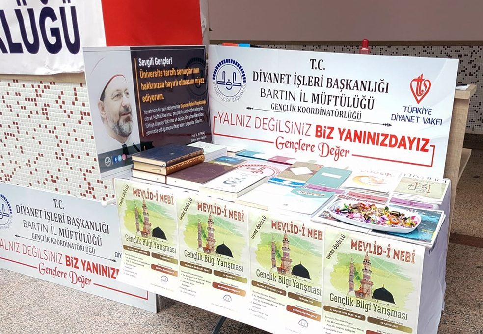 Bartın Üniversitesinde öğrenim gören gençlere diyanet hizmetlerini tanıtmak ve onlara destek olmak amacıyla Bartın Müftülüğü Gençlik Koordinatörlüğü tarafından kurulan standa öğrenciler yoğun ilgi gösteriyor. Bartın Gençlik Koordinatörü Muhammet Arabacı öğrencilerin standa gösterdiği ilgiden memnun olduğunu ve bu çalışmaların devam edeceğini belirtiyor.