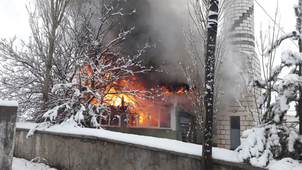 Ağır hasar gören camideki Kur'an-ı Kerim'in yanmaması dikkati çekti.