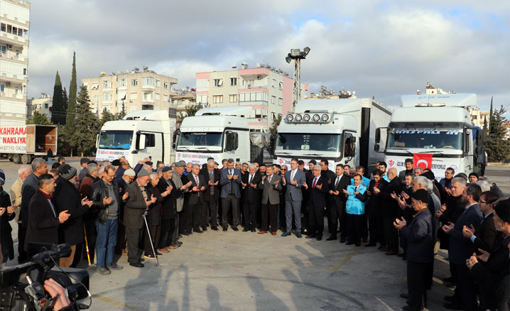Antalya İl Müftülüğü ile Türkiye Diyanet Vakfı Antalya Şubesi koordinesinde 6,8 şiddetinde depremi yaşayan Elazığ’da evleri hasar gören vatandaşlar ile Suriye'nin İdlib kırsalındaki ihtiyaç sahipleri için başlatılan yardım kampanyası kapsamında hazırlanan yardımları taşıyan 5 tır, İl Müftülüğünce düzenlenen törenin ardından dualar eşliğinde uğurlandı.