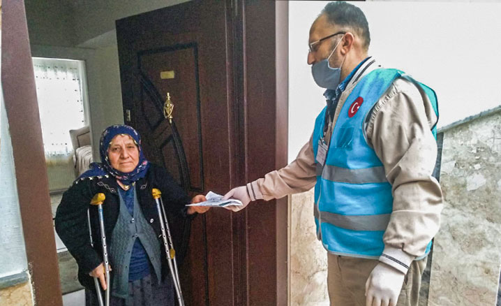 65 yaş üstü ve kronik rahatsızlığı olduğu için evlerinden çıkamayan vatandaşları tek tek ziyaret eden din görevlileri, üzerinde kendi iletişim bilgilerinin bulunduğu 'Vefa Gönüllüsü' kartını bırakarak yardıma ihtiyaç duymaları halinde günün her saati kendileriyle doğrudan iletişime geçebileceklerini söyledi.