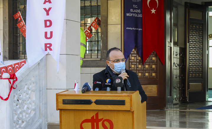 24 Ocak'ta Elazığ’ın büyük bir acı yaşadığını hatırlatan Müftü Aydın, "24 Ocak’ta büyük bir acı yaşadık ve depremde vefat eden kardeşlerimiz oldu. Allah rahmet eylesin. Pazar günü yine bir depremle sallandık. Cenab-ı Hakk'ın bizi koruduğuna inanıyorum, Allah'a şükürler olsun ve kardeşlerimize geçmiş olsun." dedi.