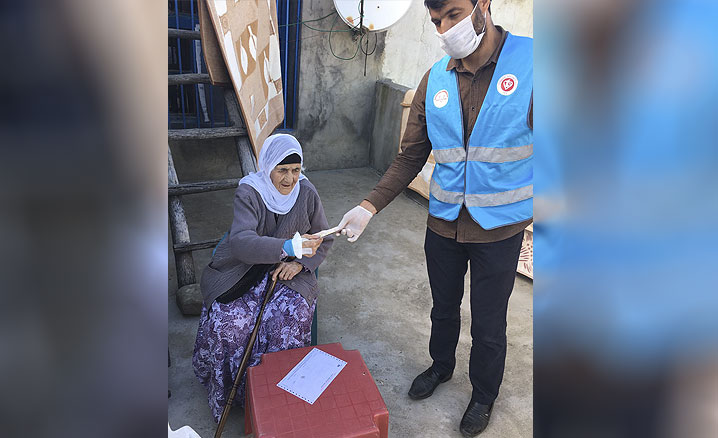 Virüsle mücadelede vatandaşa rehberlik eden din görevlileri, kendi imkânları doğrultusunda gönüllü olarak vatandaşın kapısını çalarak ihtiyaçlarını karşılıyor.