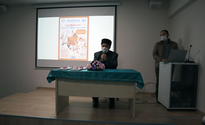 Diyanet İşleri Başkanlığı'nın "Huzurlu Aile, Güçlü Toplum, Güvenli Gelecek" projesi kapsamında, Yomra İlçe Müftülüğü Aile ve Dini Rehberlik Bürosu koordinesinde, yeni evli ve evliliğe ilk adımı atacak çiftlere yönelik düzenlenen 'Evliliğe İlk Adım' seminerleri çevrimiçi düzenlendi.
