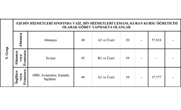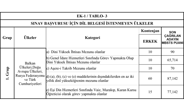 Diyanet İşleri Başkanlığınca yurt dışında görevlendirilmek üzere açılan "Yurt Dışı Uzun Süreli Din Görevlisi Sınavı" istatistiki bilgileri şöyle: